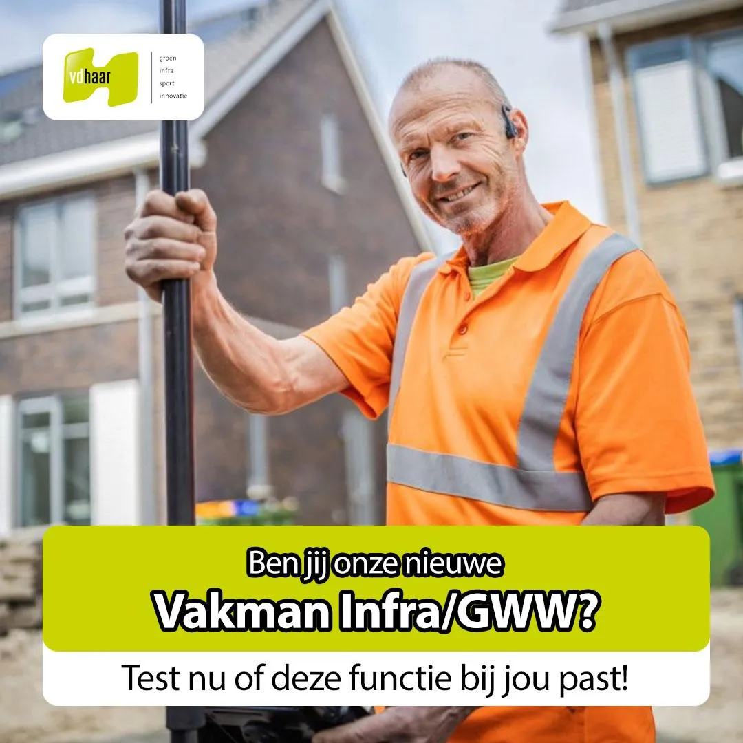 Van de Haar Groep is een hecht familiebedrijf dat sinds 1948 actief is in de realisatie en het beheer van buitenruimtes. Wij richten ons op infra, groen en sport en werken vooral in de regio. Met een team van zo’n 80 vakspecialisten realiseren we diverse projecten, van woonwijken en winkelstraten tot sportcomplexen en parken. Samenwerking, plezier en kwaliteit staan bij ons voorop!Als Vakman Infra/GWW draag je bij aan deze projecten door een veelzijdige rol te vervullen. Van grondwerk en maatvoering tot het werken met moderne machines zoals minikranen en (elektrische) minishovels – geen dag is hetzelfde!